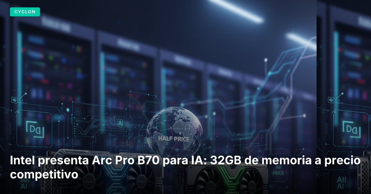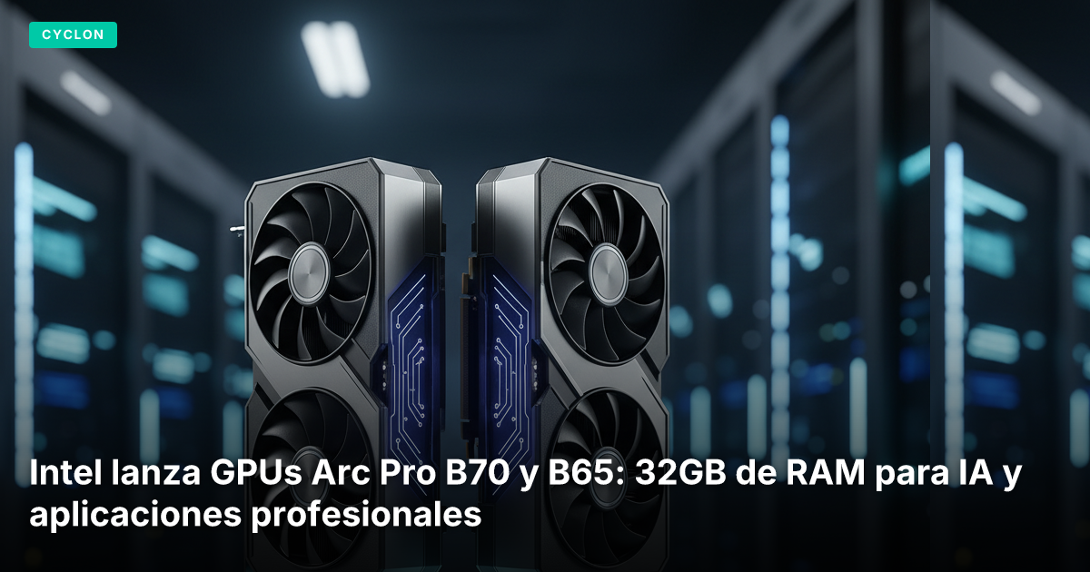 Intel lanzó las nuevas tarjetas gráficas Arc Pro B70 y B65, enfocadas en cargas de trabajo de IA y profesionales. La B70 se destaca por ofrecer 32GB de memoria a casi la mitad del precio que su competidor directo, la NVIDIA RTX Pro 4000, marcando un hito en el acceso a la inferencia local de IA.