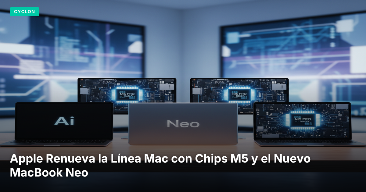 Apple anunció una importante actualización en su familia de computadoras Mac, introduciendo los potentes chips M5 Pro y M5 Max, además de un MacBook Neo más accesible y nuevas versiones del MacBook Air.